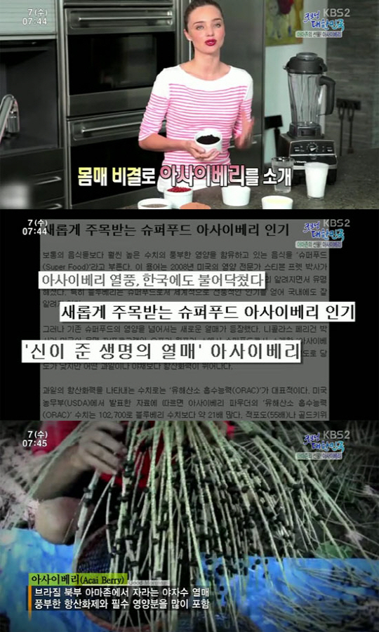 신이 주신 '슈퍼 푸드'라 불리며 높은 관심을 끈 아사이베리의 효능은 7일 오전 방송된 KBS '굿모닝 대한민국'에서 더욱 자세한 내용이 공개됐다.