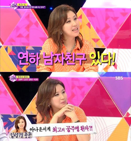 김성경은 "'X파일'에 아나운서계의 최고 공주병이라는 말이 있었다. 카메라가 꺼지면 스태프들을 하인처럼 막 대했다더라"는 MC들의 질문에 "나는 'X파일'을 보고 사실이구나 했다. 왜냐하면 당시 주변 스태프들이 날 충분히 그렇게 봤을 수 있다"고 답하며 정면 돌파했다.