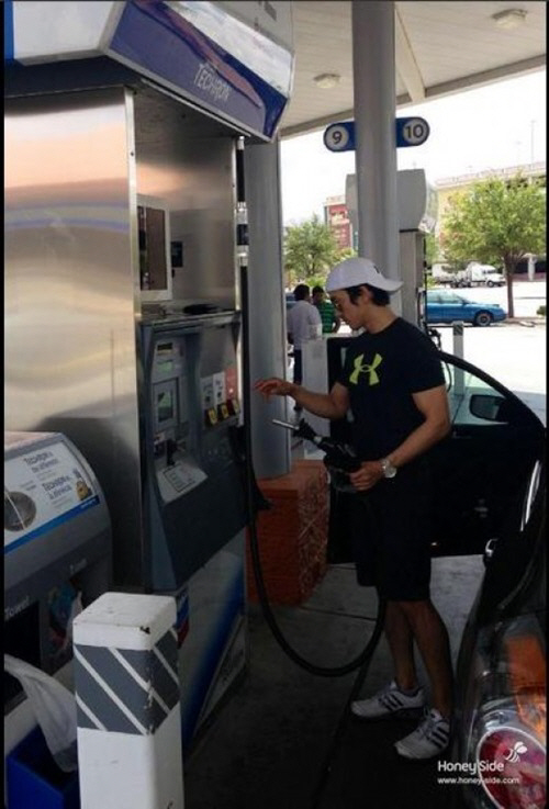 공개된 사진 속 송승헌은 티셔츠에 반바지를 입고 주유소에서 셀프 주유를 하고 있는 모습이다. 특히 송승헌은 편안한 의상임에도 불구하고 늘씬한 키와 근육질의 몸매를 자랑하고 있어 눈길을 끌었다.