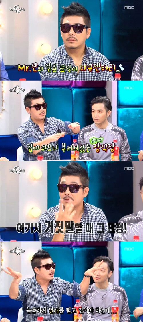이어 고영욱에 대해서도 "장난감을 좋아하는 사람은 알겠지만 스타워즈 리미티드 에디션을 전시해놨는데 그 날개가 완전히 휘었다"라며 "그게 고영욱이 한일이다"라고 신정환과 고영욱에게 반격을 가했다.