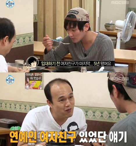 "여자친구 있느냐"는 김광규의 질문에 강타는 "없다. 입대전 여자친구가 마지막이다. 5년 됐다"고 말했다. 김광규는 "연예인이었냐"고 물었고 강타는 "5년 전 그 친구는 연예인이 아니었다"고 밝혔다.