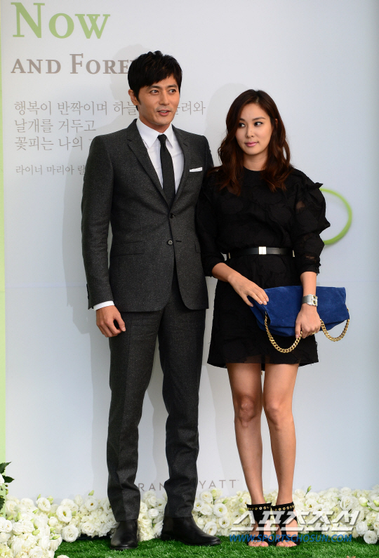 10일 서울 한남동 하얏트호텔에서 '세기의 커플' 이병헌-이민정 커플이 결혼식을 올렸다. 이날 주례는 영화계의 거장 신영균이 맡고 사회는 연기자 이범수와 방송인 신동엽이 맡으며 축가는 박정현, 박선주-김범수, 다이나믹듀오가 부른다. 결혼식에 하객으로 참석한 유지태-김효진 부부가 포토월에서 포즈를 취하고 있다. 한남동=송정헌 기자 songs@sportschosun.com/2013.8.10