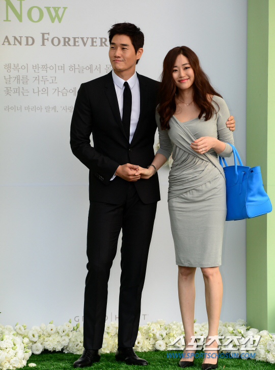 10일 서울 한남동 하얏트호텔에서 '세기의 커플' 이병헌-이민정 커플이 결혼식을 올렸다. 이날 주례는 영화계의 거장 신영균이 맡고 사회는 연기자 이범수와 방송인 신동엽이 맡으며 축가는 박정현, 박선주-김범수, 다이나믹듀오가 부른다. 결혼식에 하객으로 참석한 배우 권상우, 손태영 부부가 포토월에서 포즈를 취하고 있다. 한남동=송정헌 기자 songs@sportschosun.com/2013.8.10
