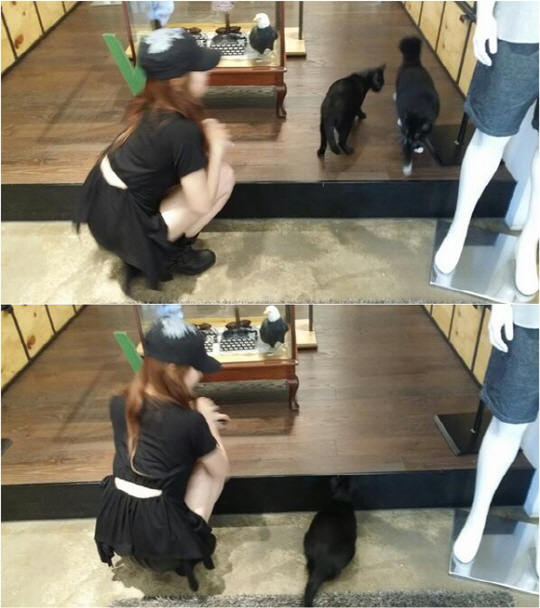 공개된 사진 속 수지는 올 블랙 하의실종 패션을 선보이며 고양이들을 구경하고 있으며 특히 수지의 허리부분이 절개된 의상으로 아찔한 뒤태를 선보여 눈길을 끌었다.