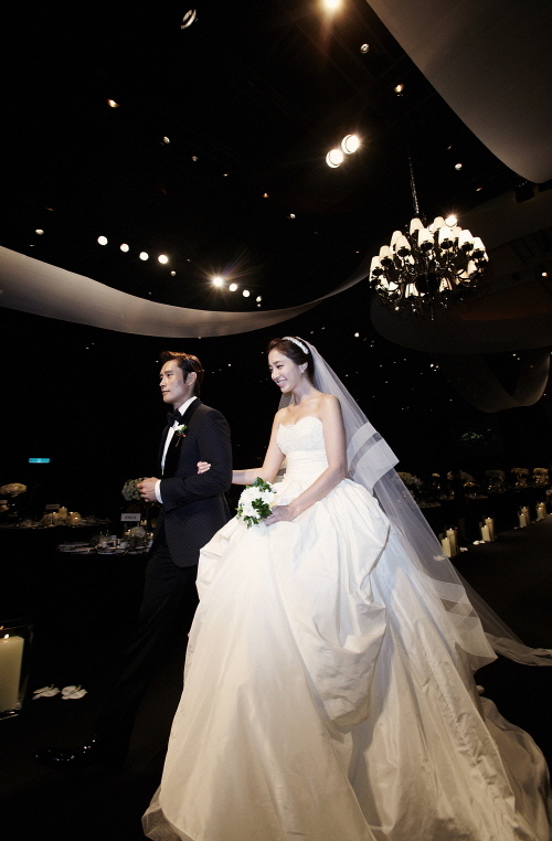 이민정은 10일 오후 6시 서울 한남동 그랜드하얏트호텔에서 이병헌(43)과 결혼식을 올리며 총 3벌의 웨딩드레스를 입었다.