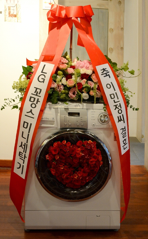 8월 10일 이병헌, 이민정 커플 결혼식장에는 LG 꼬망스 미니세탁기를 활용한 세탁기화환이 도착해 사람들 시선을 끌었다.