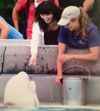 공개된 사진에는 선예가 돌고래 조련사 옆에 서서 돌고래에게 밥을 주며 환하게 웃고 있는 모습이 담겨 있다. 현재 임신 7개월이지만 늘씬한 몸매가 눈길을 끈다.