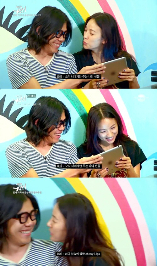 이날 이효리는 스피카 김보아가 작사한 걸그룹 레인보우의 '키스' 가사를 읊었다.
