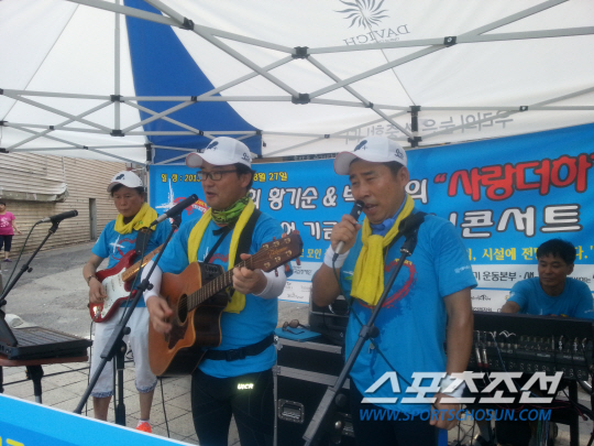 14일 오후 '황기순 사랑 더하기' 행사의 첫 기착지인 수원에 도착해 그는 무려 5시간을 쉬지 않고 무대에 서는 열정을 쏟아 모금활동에 동참해준 시민들로부터 뜨거운 박수세례를 받았다. 임병윤은 오는 27일까지 이어질 사이클 행사를 완주할 예정이다. 강일홍 기자 eel@sportschosun.com