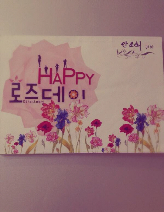 소희는 15일 자신의 트위터에 '해피 로즈데이. 모두 수고하셨습니다. 감사합니다'란 짧은 글과 함께 이 드라마의 대본 사진을 공개했다.