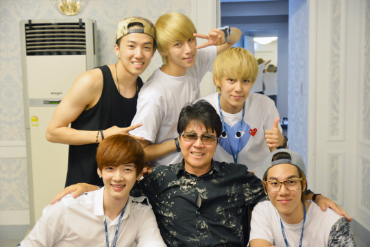 신인 그룹 소년공화국(원준,다빈,성준,민수,수웅)이 지난 15일 올림픽 공원에서 열린 '슈퍼소닉' 공연장을 찾아 선배가수 조용필과의 인증샷을 트위터에 공개했다.