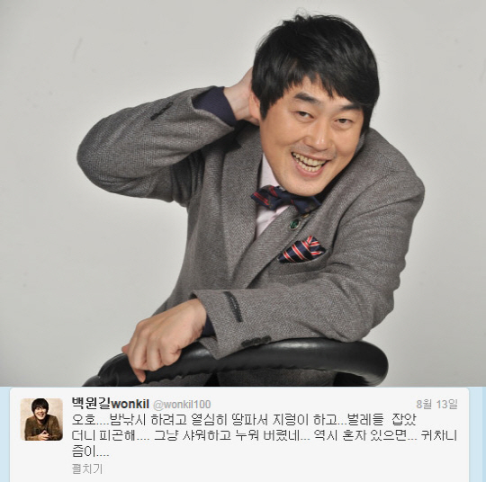 이에 앞서 백원길이 사망하기 전 자신의 SNS에 올린 글이 네티즌들의 시선을 끌고 있다. 백원길은 지난 13일 "밤낚시 하려고 열심히 땅 파서 지렁이하고 벌레들 잡았더니 피곤해. 그냥 샤워하고 누워버렸네. 역시 혼자 있으면 귀차니즘이..."라는 글을 게재하며, 이 글이 생전 마지막 글로 알려져 네티즌들의 안타까움을 자아냈다.