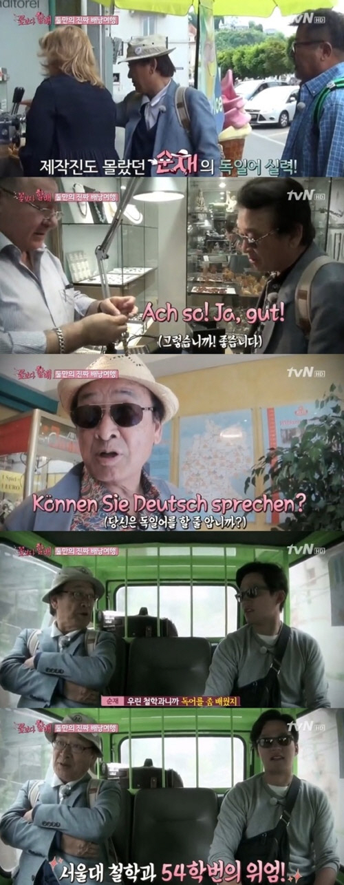 또한 화면에는 '서울대 철학과 54학번의 위엄'이란 자막이 등장해 이순재의 학력이 공개돼 눈길을 끌었다. 이외에도 이순재는 체크인을 하거나 길을 묻는 과정에서 영어 실력을 공개해 감탄을 자아냈다.