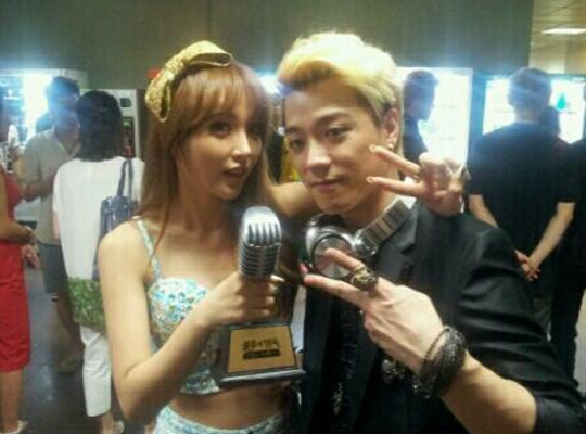 공개된 사진 속에서 홍진영은 '불후의 명곡2'에서 같은 팀을 이뤄 우승을 일군 래퍼 아웃사이더와 트로피를 손에 쥐고 다정한 포즈를 취하고 있다.
