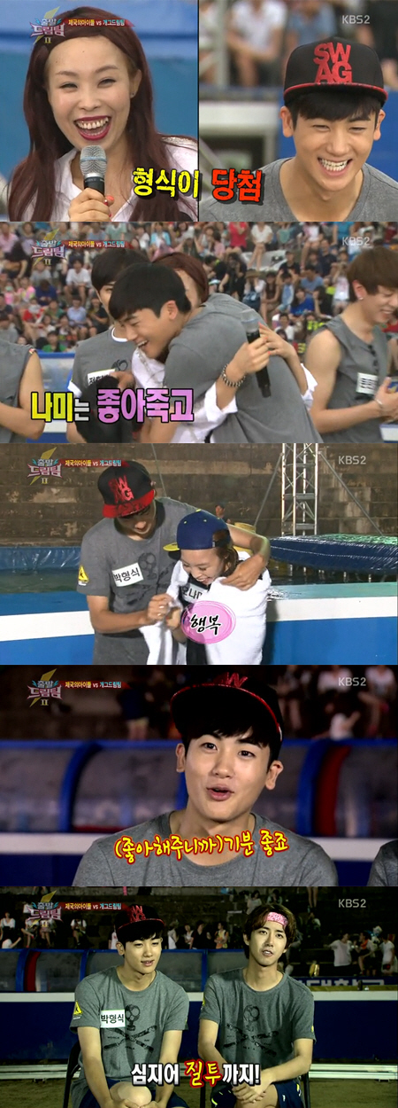 이날 개그드림팀의 멤버로 나선 오나미는 제국의 아이들 중 가장 좋아하는 멤버로 박형식을 꼽았다. 그는 "너무 귀엽고 내 스타일이다. 오늘 정말 좋은 추억 만들었으면 좋겠고 승부를 떠나서 오늘 즐겁게 즐기자"고 말했다.
