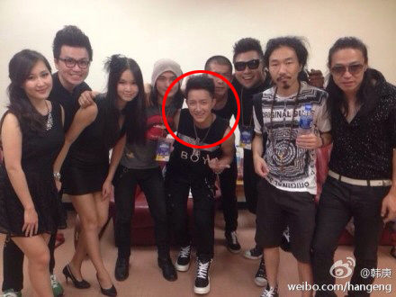 한경은 17일 자신의 웨이보에 최근 공연을 마친 후 스태프들과 함께 찍은 사진을 게재했다.