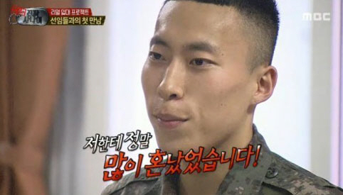 이에 김동영 병장은 "류수영 이병이 만나고 싶어 했던 유승호 조교, 나에게 정말 많이 혼났다"고 말했다. 이어 "어느 누구도 열외와 자비는 없다"고 말해 김동영 병장의 엄포에 멤버들이 긴장한 모습이 전파를 탔다.