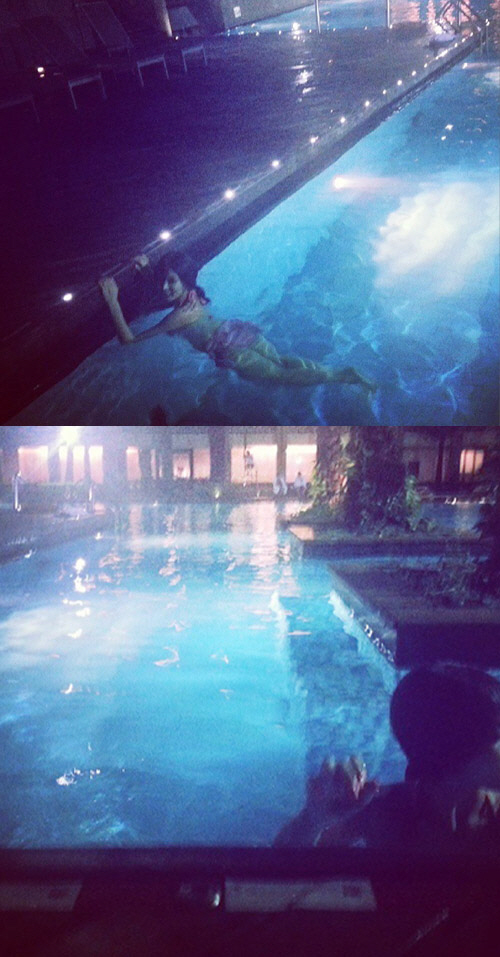 공개된 사진 속에서 현아는 수영장에서 홀로 수영을 즐기고 있는 모습이 담겨져 있다.