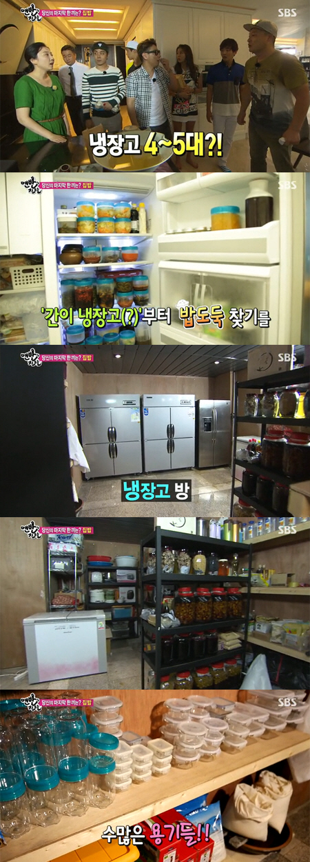 이어 주방을 구경하던 중 강호동은 "냉장고가 4~5대가 있다는 얘기를 들었다"고 말했고, 김나운은 "1층에 냉장고 방이 있다"고 밝혔다. 집 밖에 마련된 냉장고 방은 상상을 초월했다. 업소용 냉장고 4대와 김나운이 손수 담근 절임 반찬들, 수많은 용기가 진열돼 놀라움을 샀다. 냉장고 안에는 날짜와 원산지를 꼼꼼하게 적어놓은 음식재료들이 가득했다.