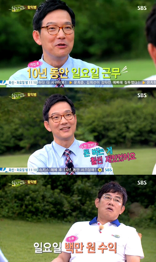 이날 MC 성유리는 함익병에게 "20년 전 개원 당시에 한 달에 집 한 채 벌었다고 들었다"고 물었다. 이에 함익병은 "그 당시 피부과 미용시장을 독식했다. 환자가 정말 많아 병원 밖에 줄을 선 적도 있었다. 다들 점을 빼러 온 사람들이었다. 당시 매출이 무지하게 많았다"고 답했다.