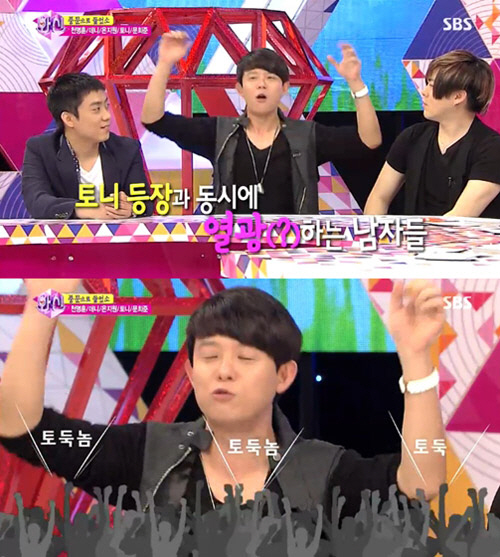 토니 안은 "난 핫젝갓알지 하면서 남자들에게 인기가 많아졌나 했는데 아니었다. 토둑놈이 됐다"고 말해 현장을 웃음바다로 만들었다.