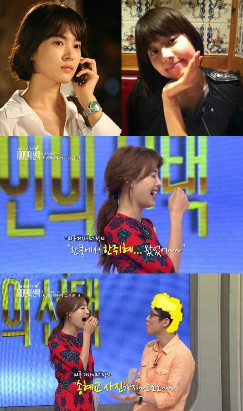그러자 잠시 머뭇거리던 한지혜는 "사실 있다. 송혜교 언니 단발머리가 예뻐 보여 미국에 갔을 때 송혜교 사진을 들고 가서 이렇게 해달라고 한 적이 있다"고 답했다. 이어 "그들은 송혜교가 누구고 한지혜가 누군지 모르니, 한지혜가 송혜교 머리 하러 왔다는 것을 모를 것 아니냐"고 고백해 웃음을 자아냈다.