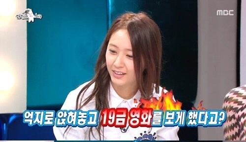 이날 MC들은 크리스탈에게 "소녀시대가 숙소에 놀러온 크리스탈에게 억지로 19금 영화를 보여줬던 적이 있다던데?"라고 물었다.