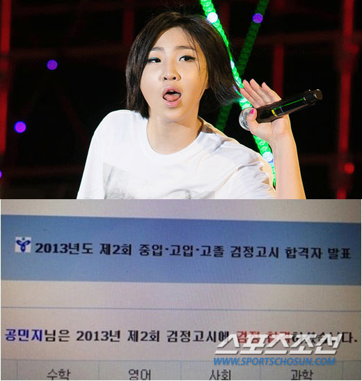 걸그룹 2NE1 멤버 공민지가 검정고시에 합격했다.