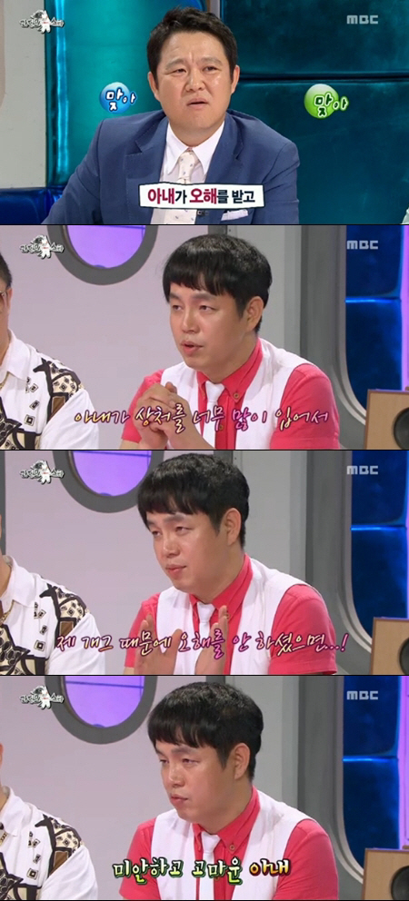 이날 방송 마지막 부분에서는 지난해 아내 폭행설에 휘말린 바 있는 김경민이 아내와의 불화설에 대해 적극 해명했다.