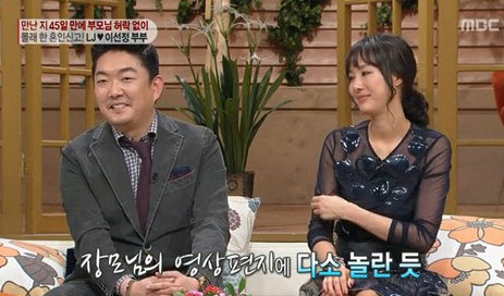 또 "아직도 부모님들은 결혼을 반대하고 있다"고 밝히기도 해 주위를 안타깝게 했다. 이선정의 모친은 한 아침방송에 출연한 두 사람을 보고 "첫 인상이 좋지는 않았지만, 혼인신고까지 했으니 잘 살으라"며 당부하기도 했다.