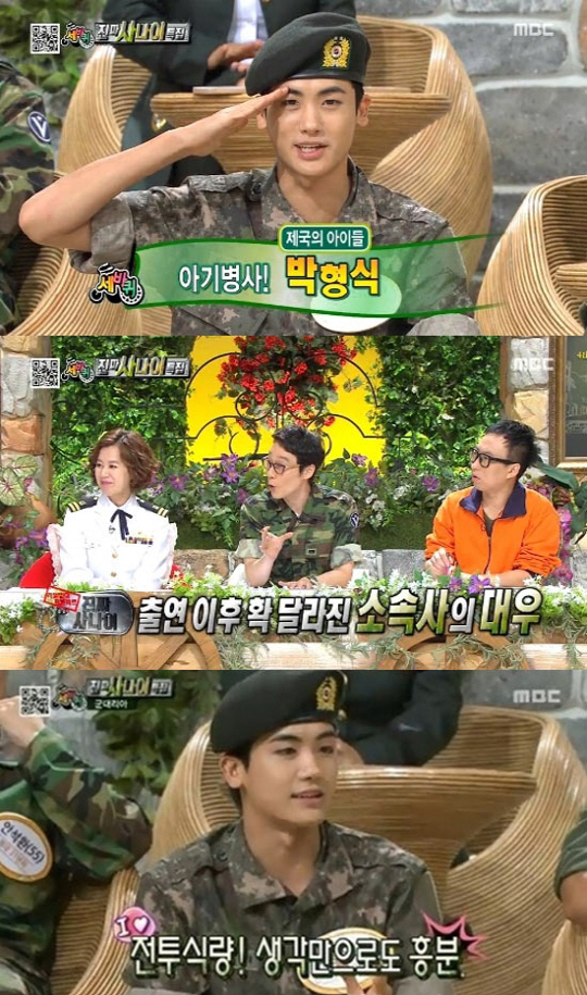 이날 박형식은 '진짜 사나이' 출연 이후 '아기병사'로 불리며 큰 사랑을 받고 있는 데 대해 소속사에서 달라진 대우를 고백했다.