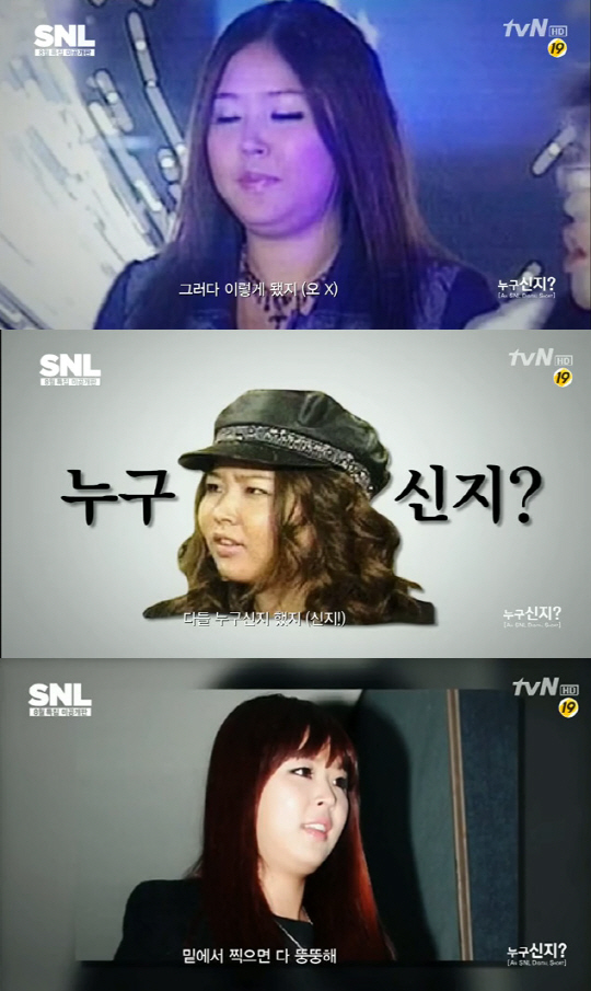 신지는 24일 방송된 케이블채널 tvN 'SNL코리아' 미공개 콩트 방영분에서 영화 '코요태 어글리'를 패러디한 '누구신지' 뮤직비디오를 공개했다.