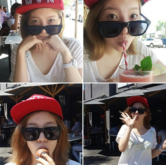 공개된 사진 속에서 써니는 빨간색 모자와 선글라스를 낀 채 다양한 포즈를 취하며 카메라 정면을 응시하고 있다.