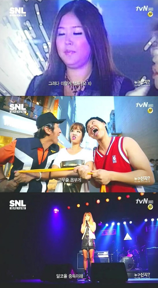 신지는 24일 방송된 케이블채널 tvN 'SNL코리아' 미공개 콩트 방영분에서 영화 '코요태 어글리'를 패러디한 '누구신지' 뮤직비디오를 공개했다.