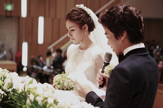 서울 종로구 동숭동의 동숭교회에서 결혼식을 올린 부부는 개그맨 정범균의 사회로 진행됐다.