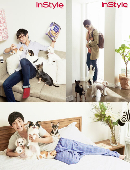 강타는 최근 패션 매거진 인스타일과 함께 그가 키우고 있는 반려견들과 화보촬영에 참여했다.