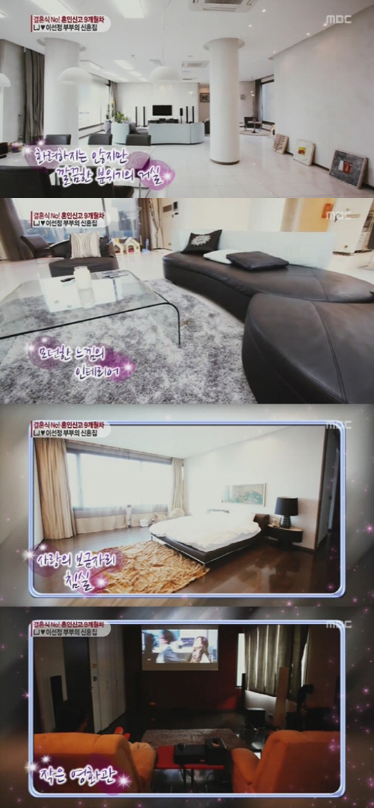 공개된 사진은 지난 3월 MBC '기분좋은날'에 이선정과 LJ가 출연, 신혼집을 공개했던 영상의 캡처사진이다. 해당 영상에서 소개된 두 사람의 럭셔리한 신혼집은 화이트톤의 모던 인테리어가 돋보이는 넓은 거실과 영화관까지 갖춘 러브하우스로 이선정이 직접 꾸민 것으로 알려져 화제가 된 바 있다.