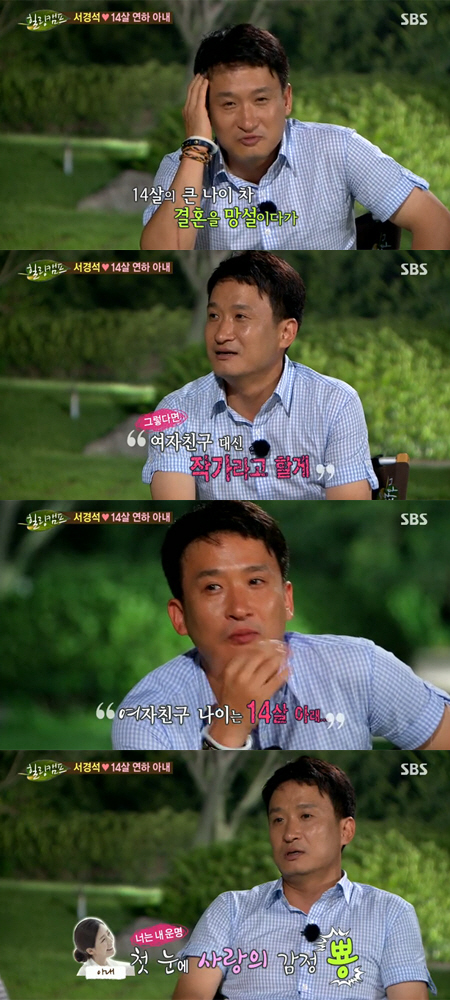 서경석은 지난 26일 방송된 SBS '힐링캠프, 기쁘지 아니한가'에서 14세 연하 아내와의 첫 만남에 대해 떠올렸다.