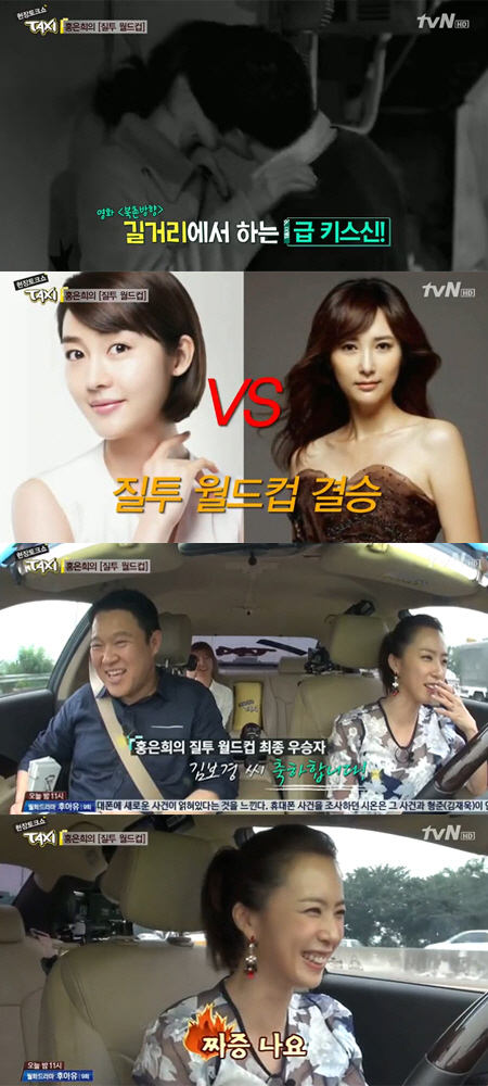 이날 방송에서는 홍은희의 '질투 월드컵'이 진행됐다. 남편 유준상이 영화나 드라마를 통해 호흡을 맞춘 상대 여배우 중 가장 홍은희의 질투를 유발한 여배우를 꼽는 것.