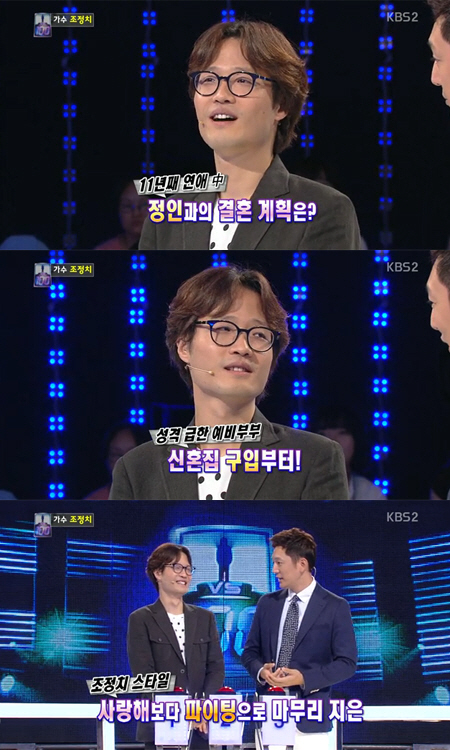 이날 조정치는 "조만간 결혼하려고 한다. 늦어도 내년 초 안에는 할 것 같다"고 말했다. 이어 "아직 날짜는 안 정했지만 같이 신혼집을 구했다. 결혼식을 하고 합쳐야 하니까 조금 여유 있게 준비하고 있다"고 밝혔다.