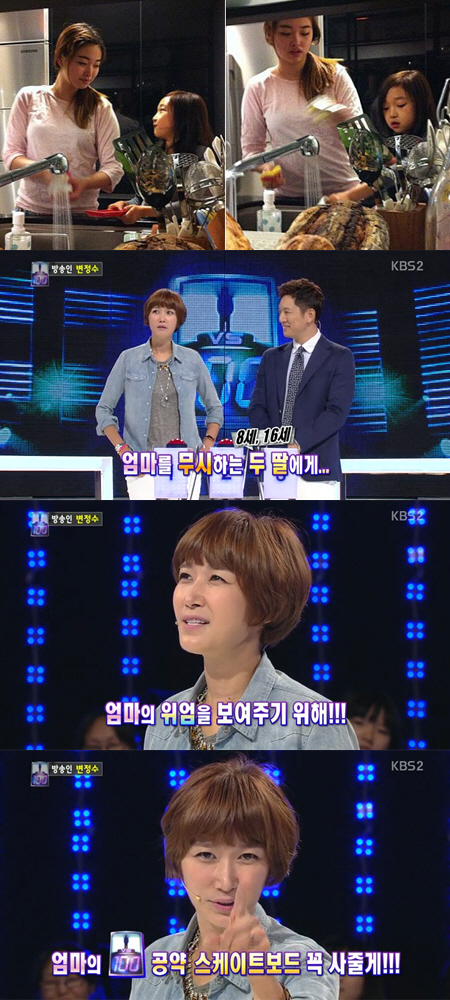 이날 변정수는 "16세 큰딸과 8세 작은딸이 있는데 항상 '엄마 이거 할 수 있어? 엄마 이거 알아?'라고 하면서 날 약간 무시하는 것 같더라"고 말했다.