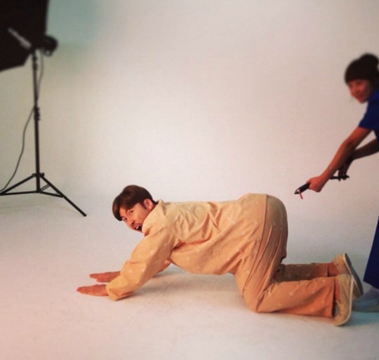 사진 속 노홍철은 황토색 병원복을 입고 엎드린 채 우스꽝스러운 표정을 짓고 있다. 노홍철 엉덩이 쪽에는 항문질환을 치료하기 위한 치료기기를 든 스태프가 서있어 웃음을 자아내고 있다.
