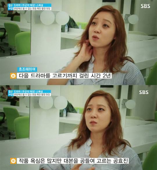 28일 오전 방송된 SBS '좋은 아침'에서 공효진은 SBS 수목드라마 '주군의 태양'을 촬영하는 소감과 배우로서의 고민을 털어놨다.