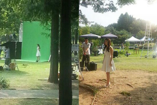 사진은 최근 한 화장품 광고 모델로 발탁된 것으로 알려진 태연이 양재에 위치한 시민의 숲에서 광고 촬영 중인 모습을 포착한 것.