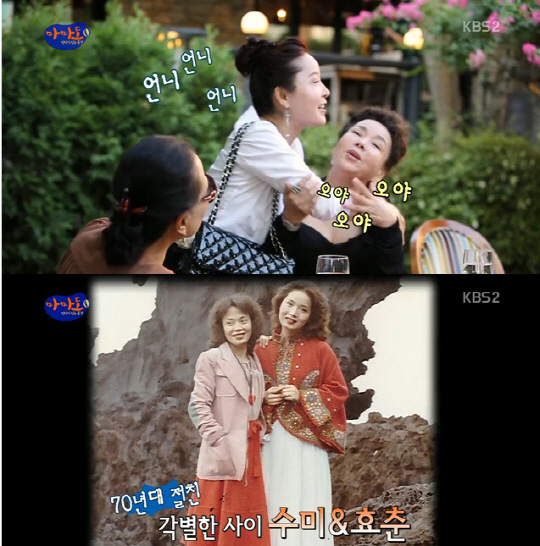 뒤이어 등장한 이효춘은 김수미를 보고 반가워하며 "어렸을 때 별명이 거머리였다. 70년대부터 김수미와 붙어다녔다"고 말했다.