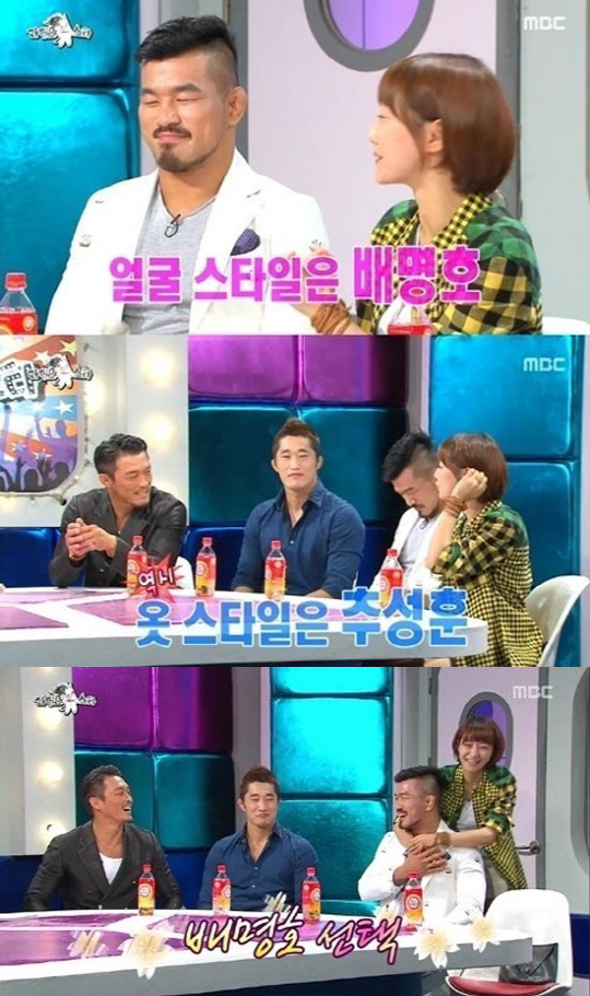 이날 홍일점인 신소율에게 MC 들은 "추성훈, 김동현, 배명호 중 이상형은 누구냐"라며 질문을 던졌다.