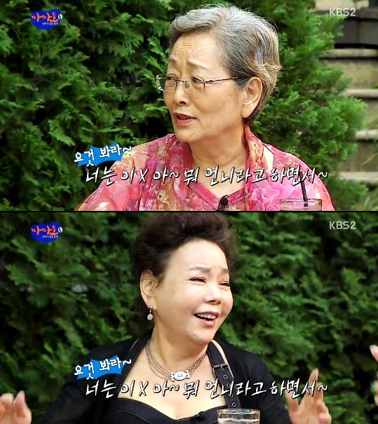 그러자 김영옥은 오히려 김수미에게 "너는 이 x야, 열 살이나 아래인데 너도 내게 '언니'라고 하지 않느냐, 이 X야"라고 다그쳐 '할미넴' 다운 거침없는 발언으로 웃음을 자아냈다.