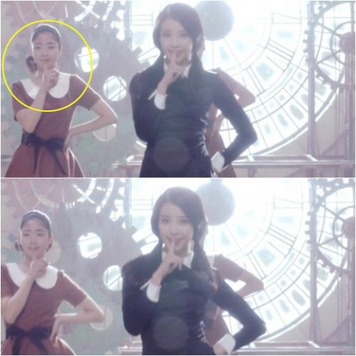 아이유 뮤직비디오 속 정은우는 머리를 뒤로 묶은 채 소녀풍 원피스를 입고 아이유 뒤에서 안무를 따라하고 있다. 앳된 모습의 정은우는 아이유 못지않은 깜찍한 매력을 발산해 시선을 모은다.
