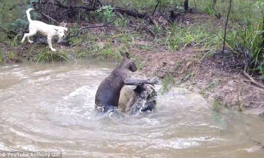 더 놀라운 것은 이 동영상 안의 캥거루의 모습이 마치 복서의 모습을 방불케 했다는 것. 화가 난 캥거루는 자신을 향해 짖어대는 개를 두 앞발로 흙탕물에 집어넣거나 개의 정신없이 얼굴을 가격했다.