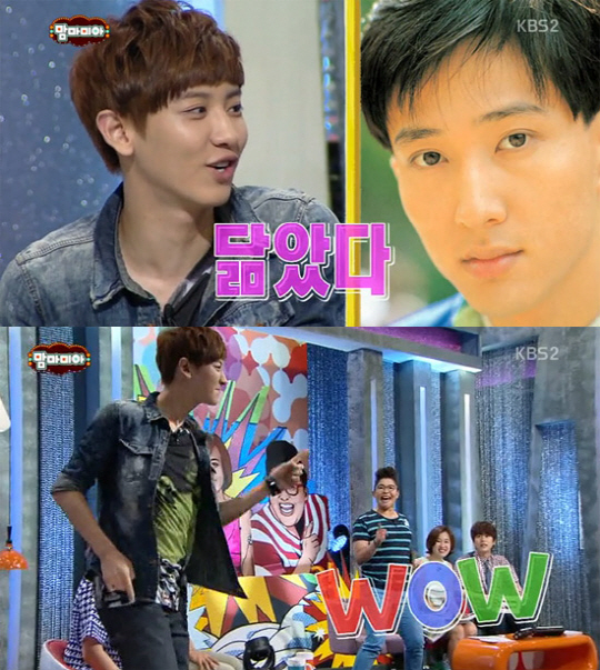 이날 방송에서 MC 박미선은 찬열에게 "누구 닮았다는 소리 못 들어봤냐"고 질문했다. 이에 찬열은 "누굴 닮은 것 같나요?"라며 말했고, 박미선은 "가수 심신 씨를 닮은 것 같다"고 답변했다.